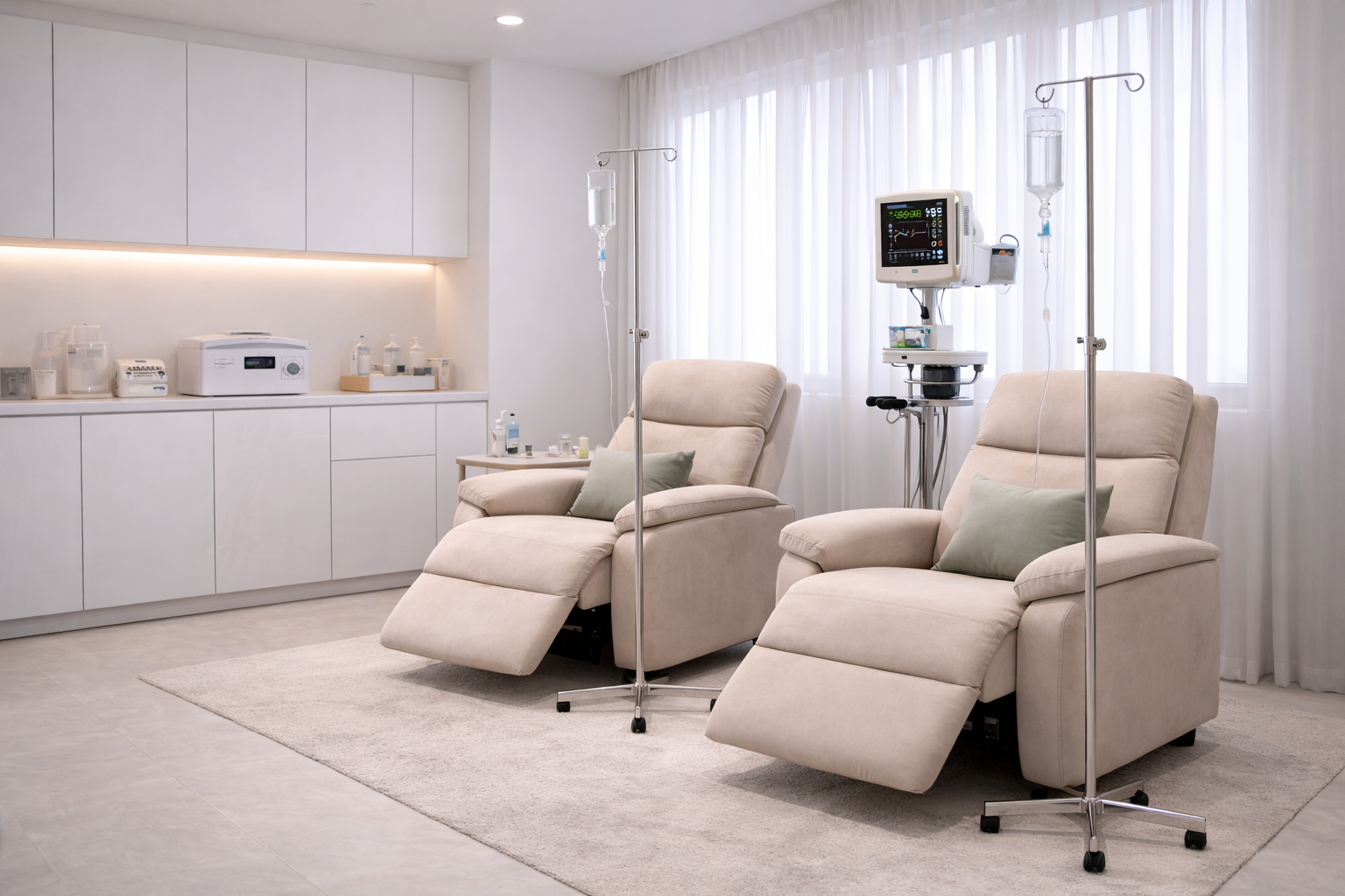 - Строгие санитарные нормы, одноразовые материалы и контроль каждой инфузии для максимальной безопасности.